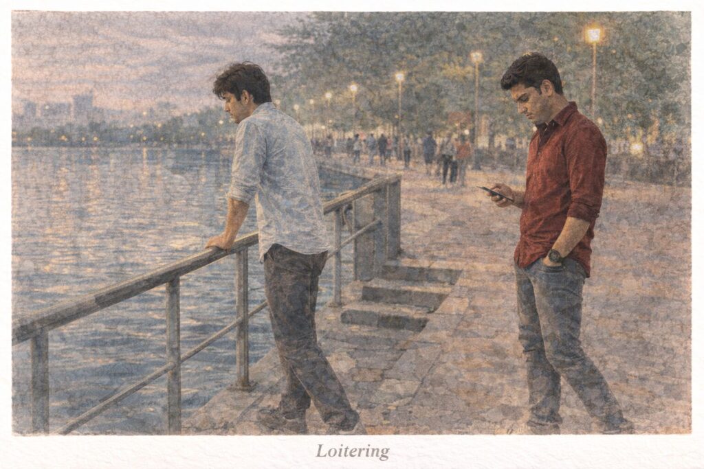 Set over the course of a single evening, Yeh Hawayein Bhi Kuch Kehti Hai follows Amar and Umar, two young men who arrive separately at a lakeside promenade in New Delhi. The space is ordinary, social, and alive with people, yet faintly burdened with unspoken histories.