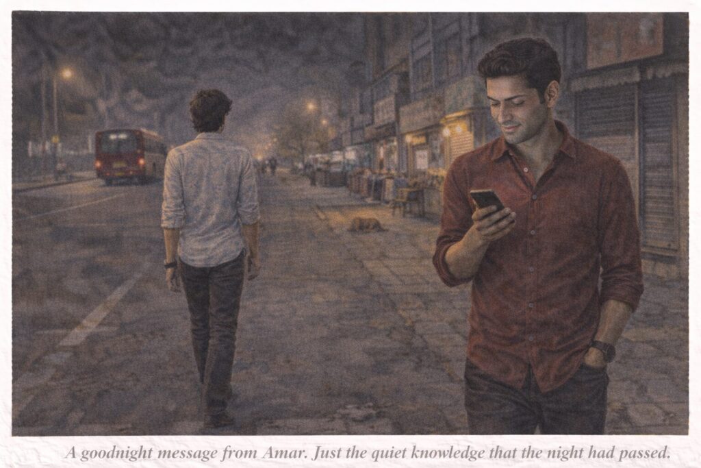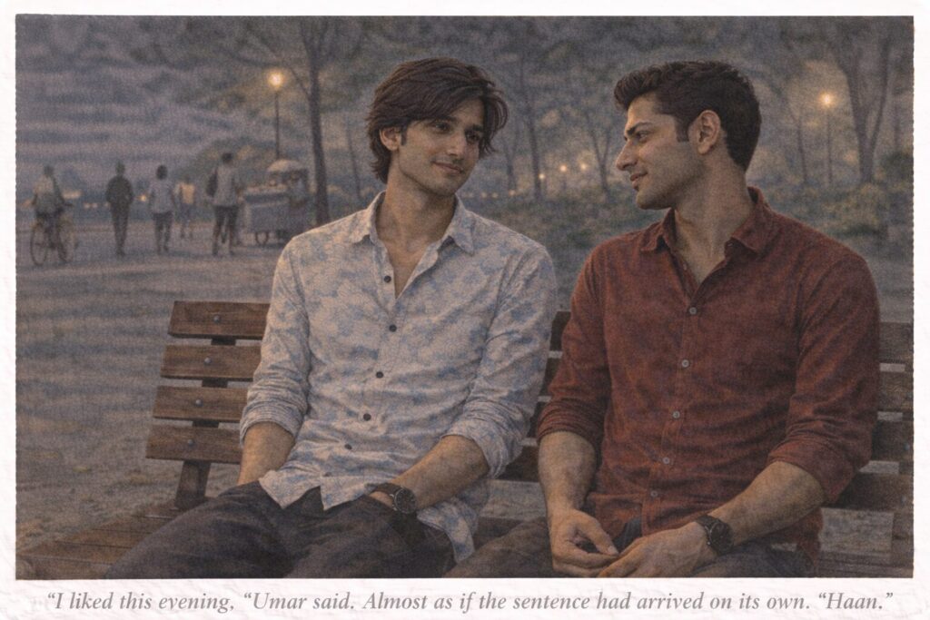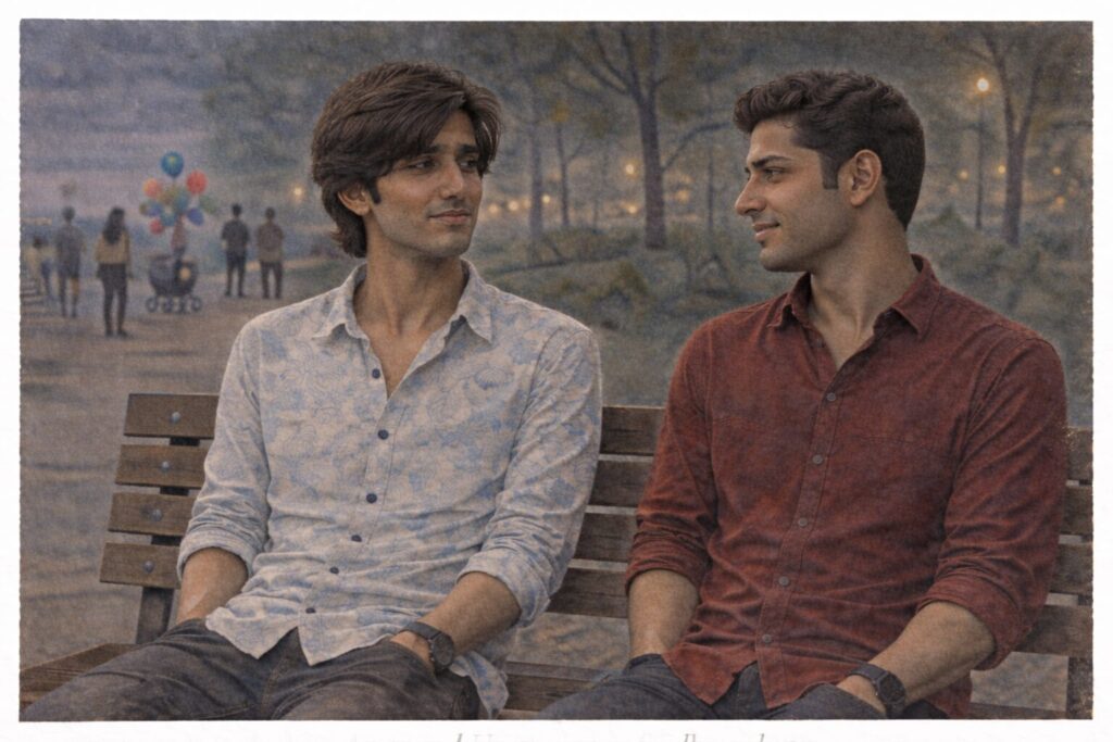 Later, circumstance brings Amar and Umar together at a crowded tea stall. Through cautious conversation, shared memories, silences, and walking side by side, each begins to sense the other’s unspoken distress. Neither confesses anything. Instead, each tries, gently and indirectly, to ensure the other is not left alone.