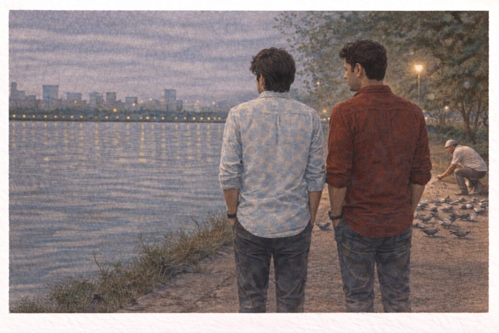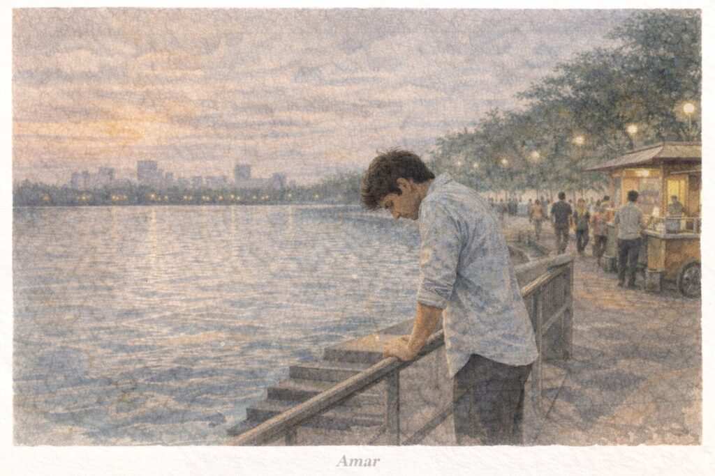Set over the course of a single evening by a city lake, the film follows Amar and Umar, two strangers who arrive alone, each carrying unspoken burdens. Without explanations or confessions, they begin to recognise something fragile in each other and, in their own quiet ways, ensure that the other is not left alone.